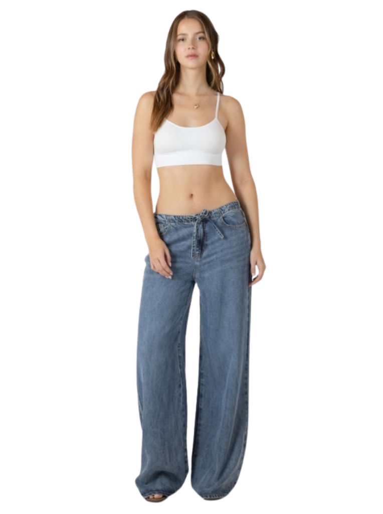 A pair of denim drawstring pants. Lightweight and comfortable, a versatile pant for everyday wear!
