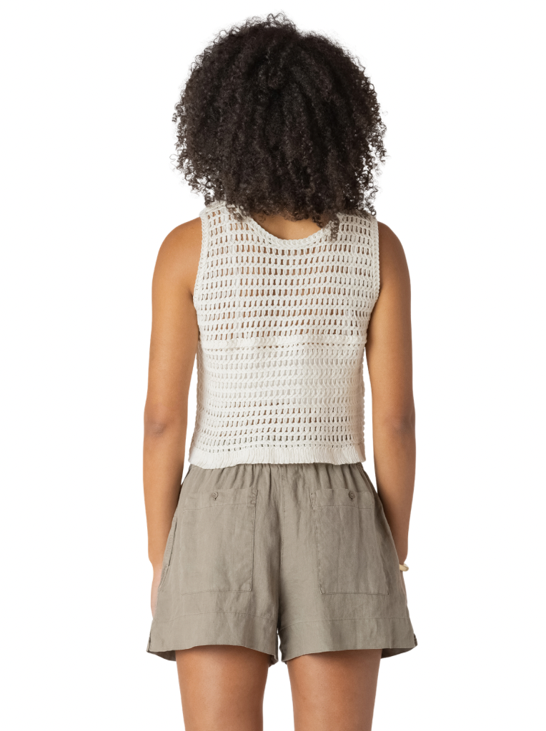 This sleeveless crochet style button-up blouse is a boho chic dream! Wear as a top or layer like a vest over a flowy dress or blouse for a 70’s inspired look. 100% Cotton.