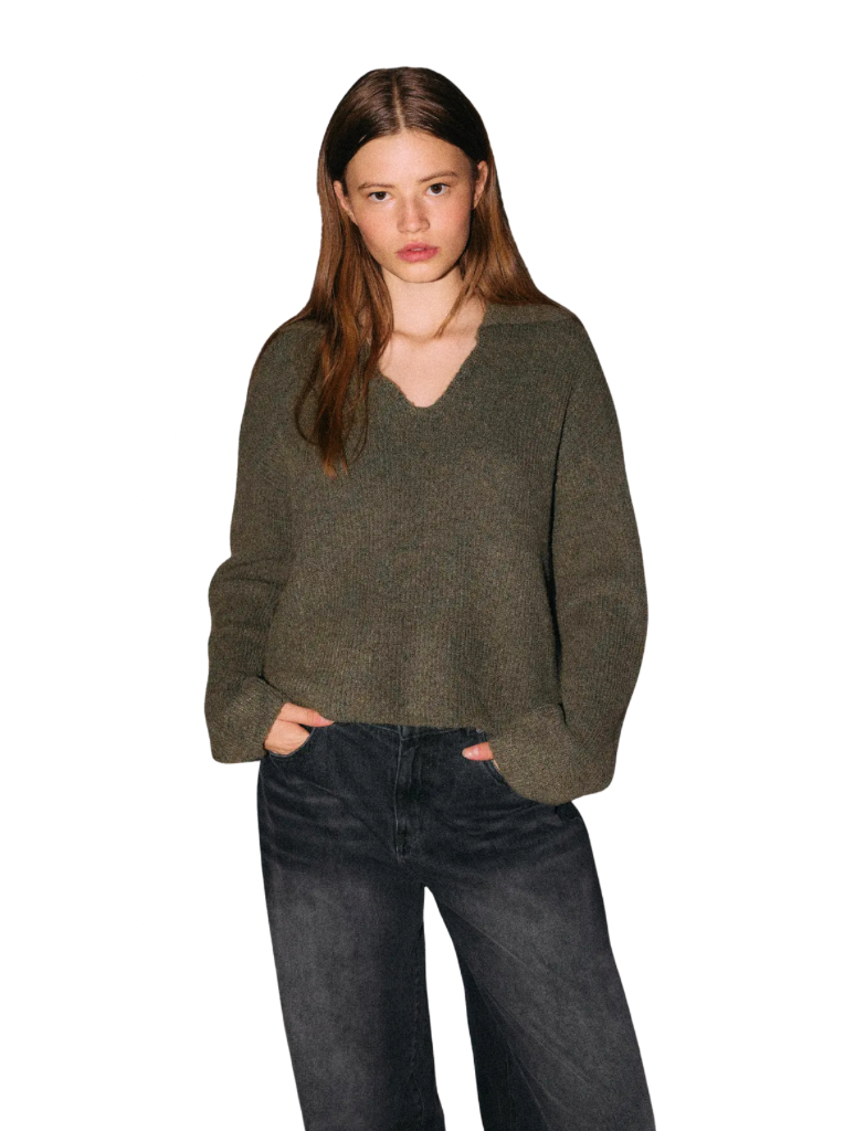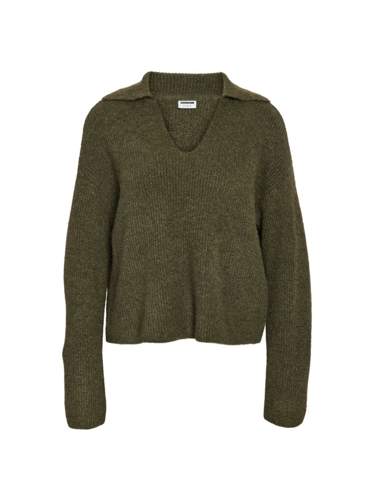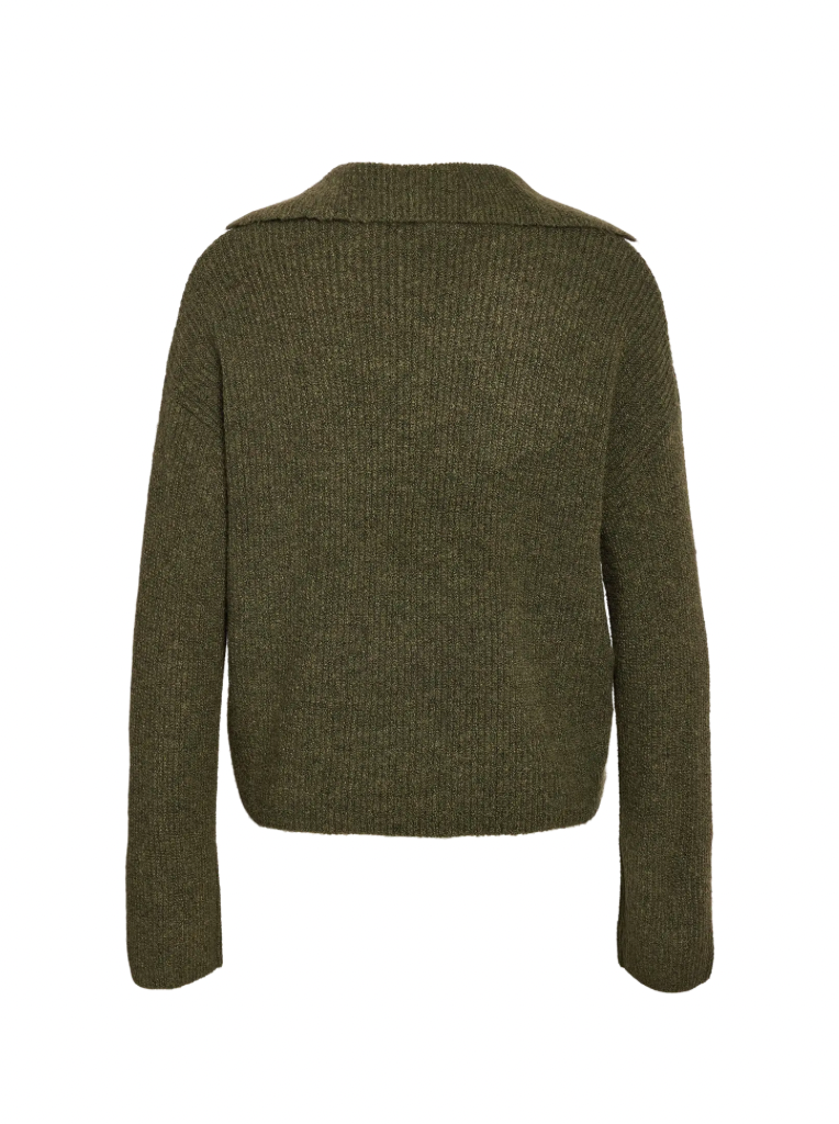 A collared knit sweater, in a beautiful moss colour. Perfect for everyday, smart casual comfort.