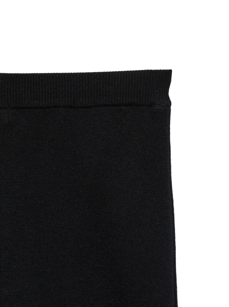 A 7/8 length, knit pencil skirt. Perfect for dressier vibes in the fall and winter. Pair with an oversized sweater, tights, and heels or boots for a cute and cozy look!