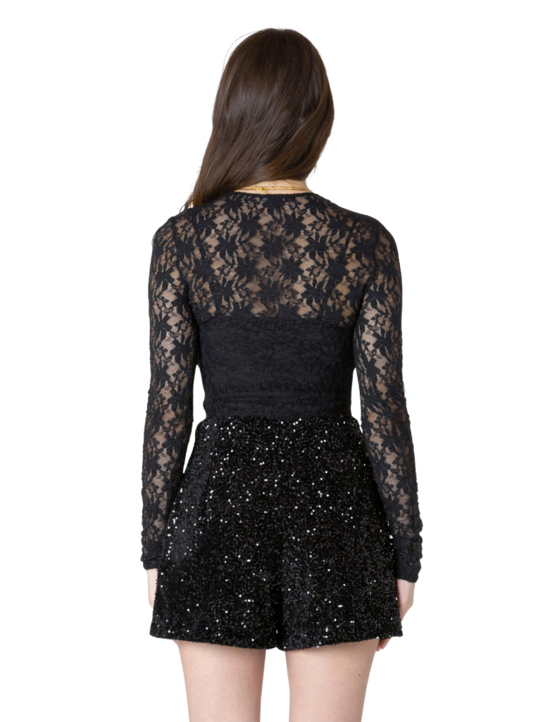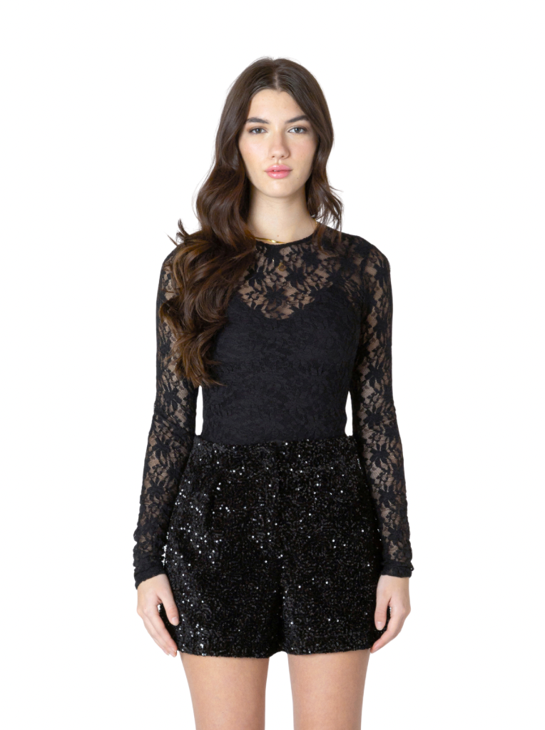 A black lace long sleeve top, perfect for layering over a tank top or even underneath one! *tank top NOT included