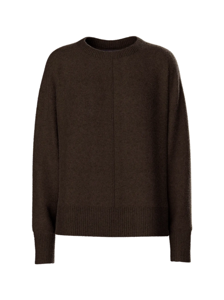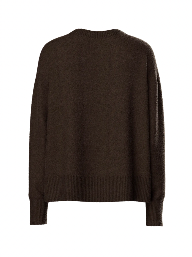 A cozy crewneck pullover sweater, in a rich hot fudge colour. The perfect knit sweater for chilly autumn and winter days.
