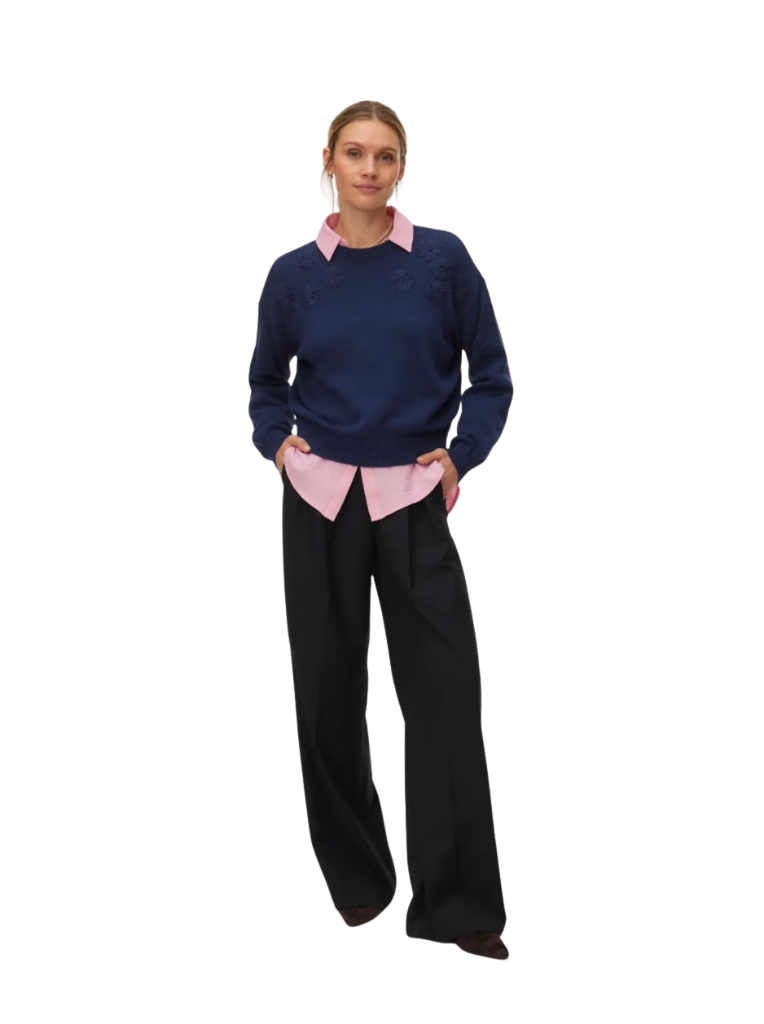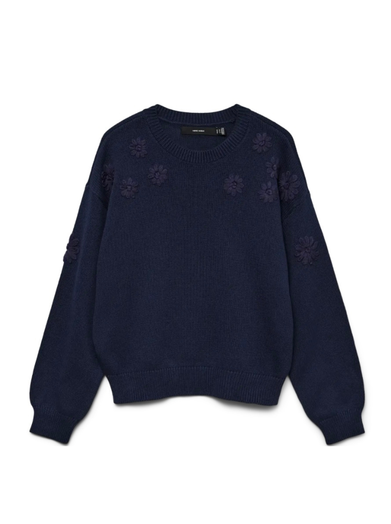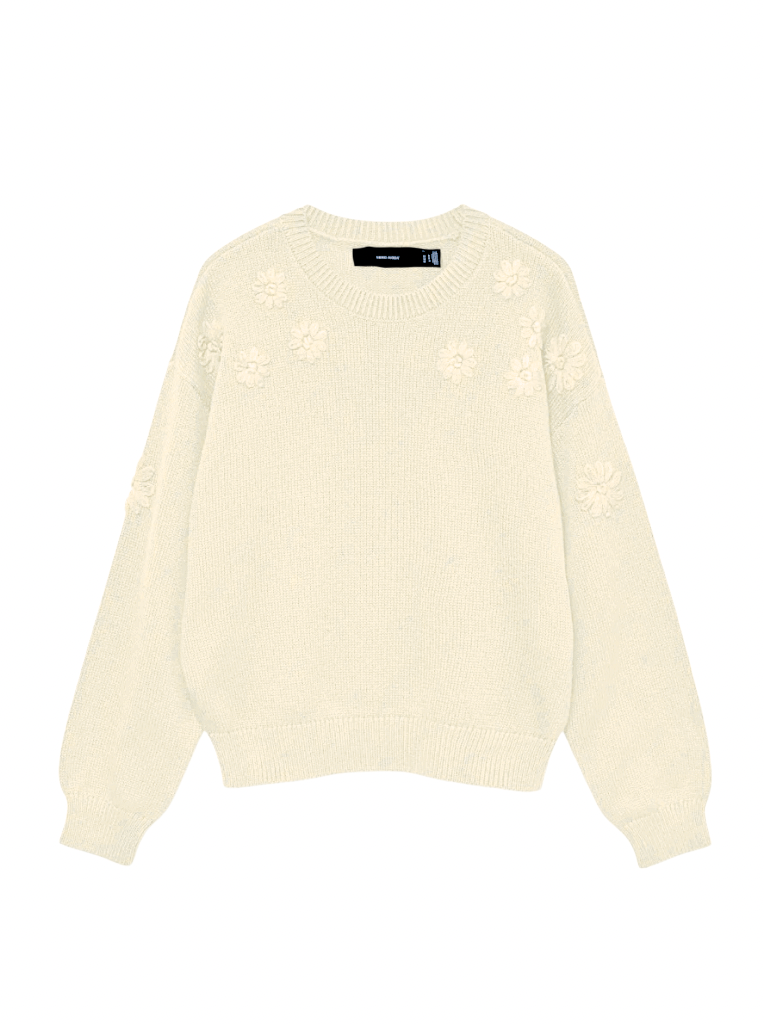 An oversized knit sweater with monochromatic floral embroidery details! Available in 3 beautiful colours