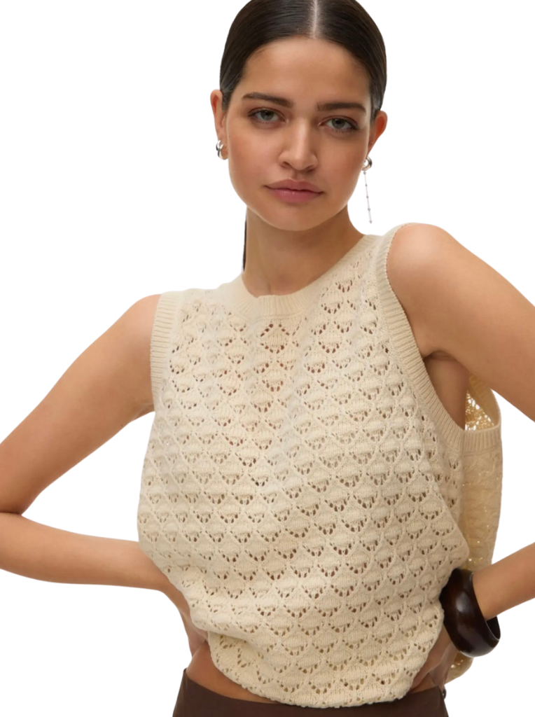 Vest style knit top, perfect on its own or layered over another top!